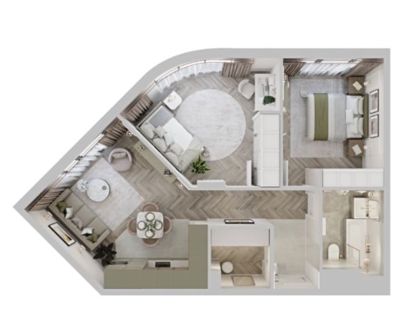ЖК состоит их двух домов в 13 этажей, соединённых между собой теплым переходом на первом этаже и с подземным паркингом на 72 машиноместа. Территория комплекса огорожена, обеспечивая приватность и безопасность. Проектом предусмотрены современные рекреационные зоны: тихие уголки для отдыха, детские площадки и лаунж-пространства для встреч с друзьями.