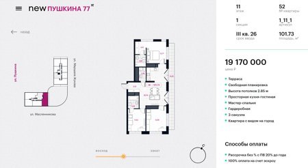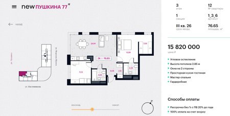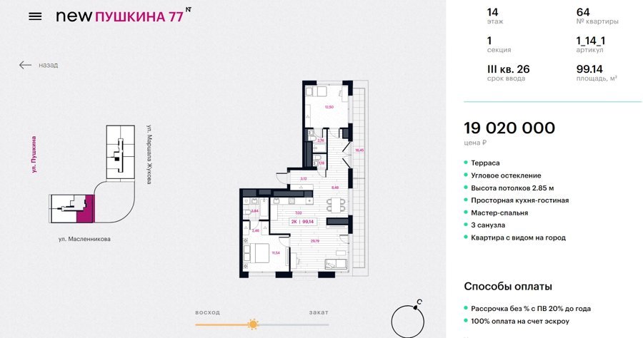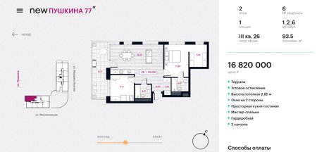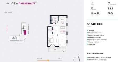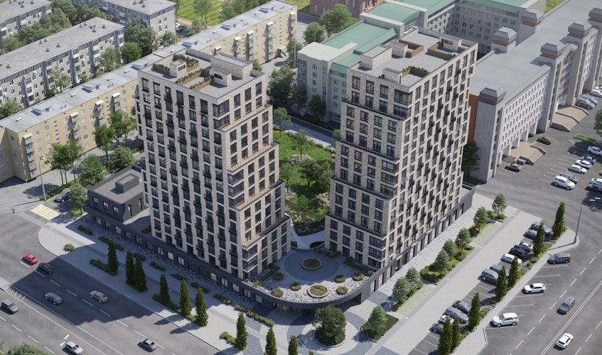 ЖК состоит их двух домов соединённых между собой террасой и теплым переходом с подземным паркингом